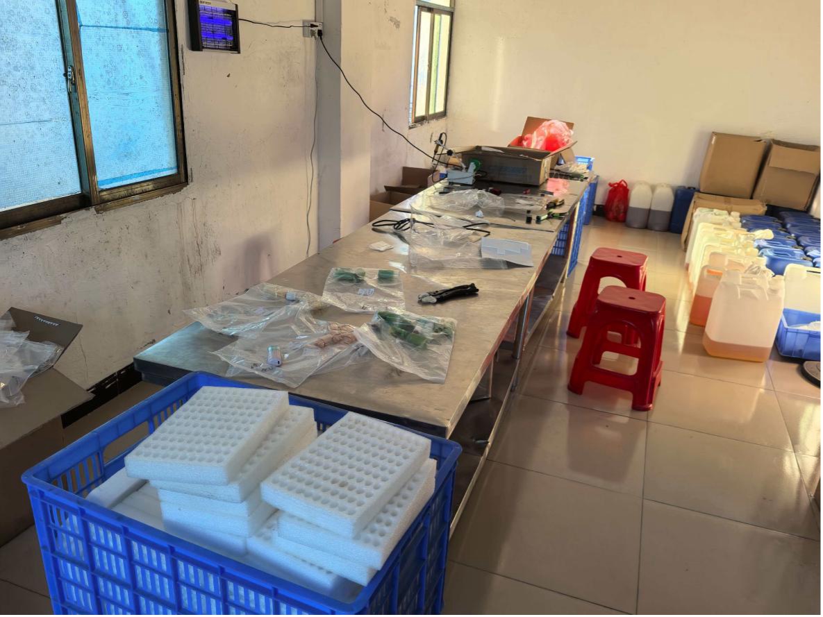 2025年12月,广东省惠州市一处制假窝点的查处,揭开了非法电子烟产业链的冰山一角。在雾芯科技配合执法部门开展的这次行动中,现场共查获假冒“悦刻”产品83752个,其中假冒“悦刻”烟弹82689个、假冒烟具1063个。雾芯科技在现场发现,该窝点不仅生产假冒水果味烟弹,还大量制造印有英文标识的假冒伪劣海外产品,以"海外代购"为幌子对外销售。